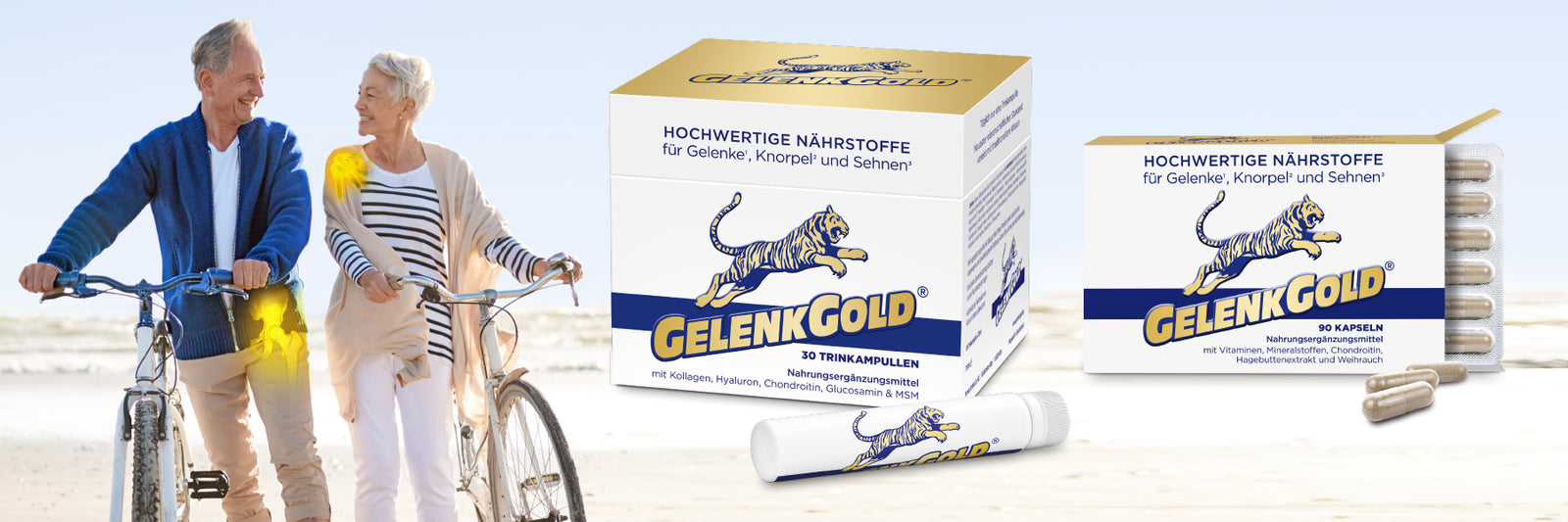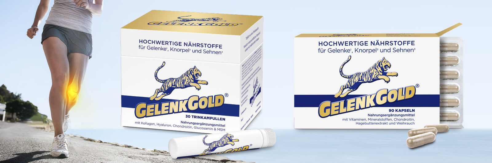 Entdecken Sie die Formel für ein unbeschwertes Leben. Mit GelenkGold® vertrauen Sie auf einen Nährstoffkomplex, der bewährte Gelenkbaustoffe, Vitamine, Mineralien und pflanzliche Extrakte in einer innovativen Kombination vereint. Entwickelt mit der Erfahrung eines deutschen Familienunternehmens, liefert Ihnen GelenkGold® die starke Basis für ein Leben in Bewegung.